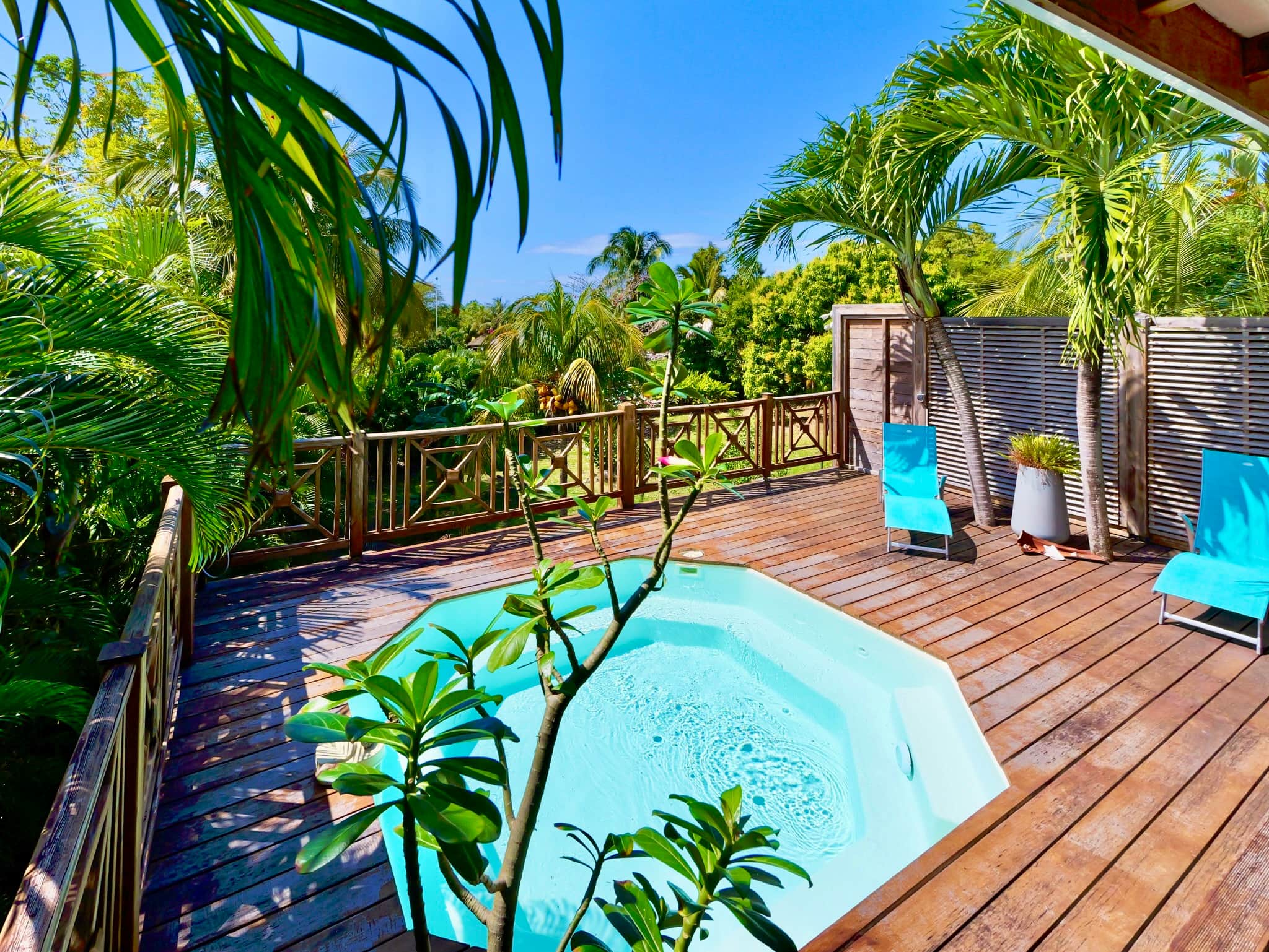 Welcome to Kaz Manga Rose, a charming wooden holiday home, comprising 2 bedrooms each with a 140 cm bed, a bathroom with shower, toilet and sink, a fully equipped kitchen and a terrace with a view of the 3-bedroom swimming pool. 50 m by 3.00 m and the garden. Kaz Manga is made up of 2 adjoining bungalows without any vis-Ã -vis. The garden below is common to the 2 bungalows.