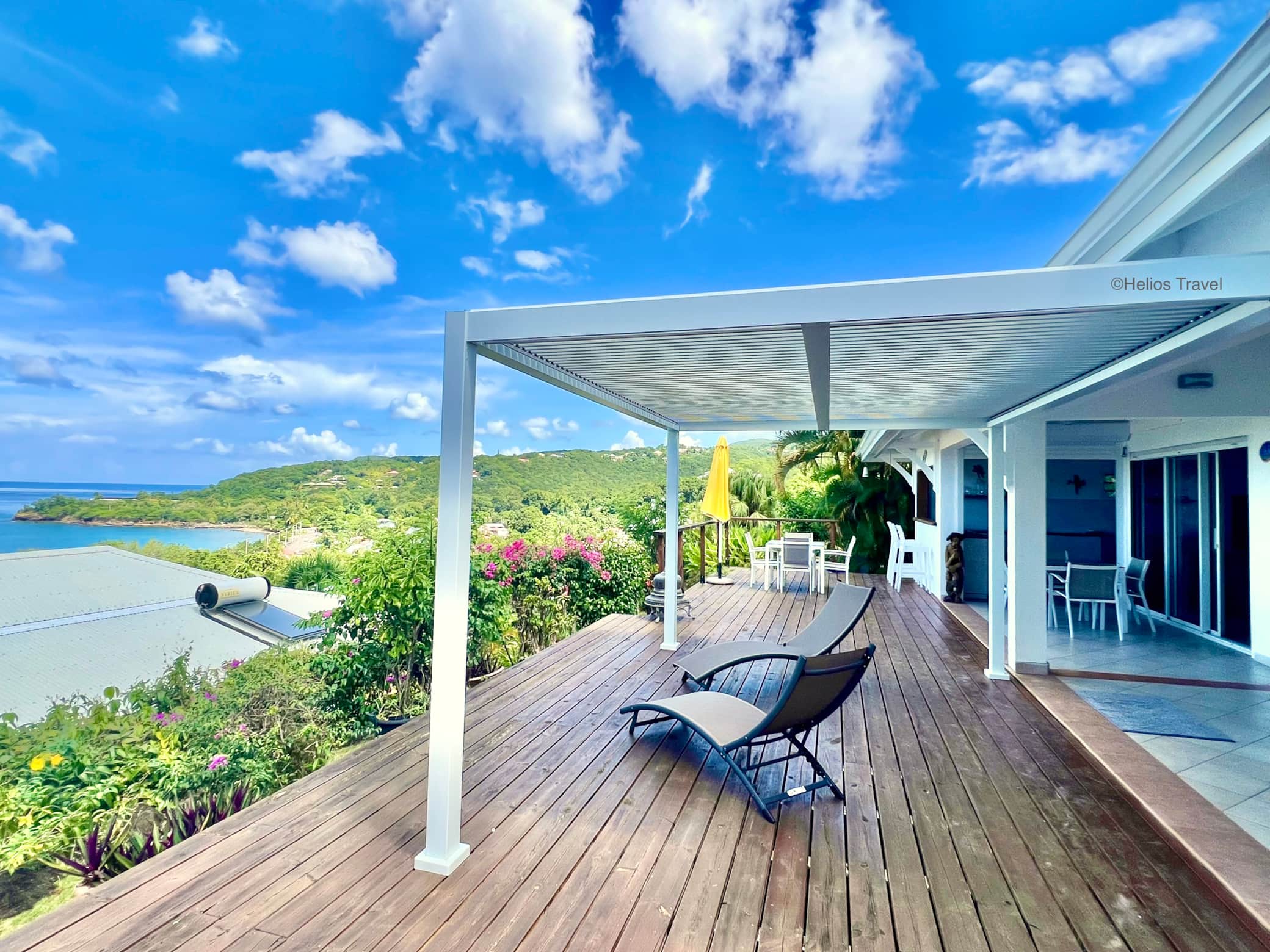 La villa Tramontane et sa terrasse avec vue sur la mer des Caraïbes